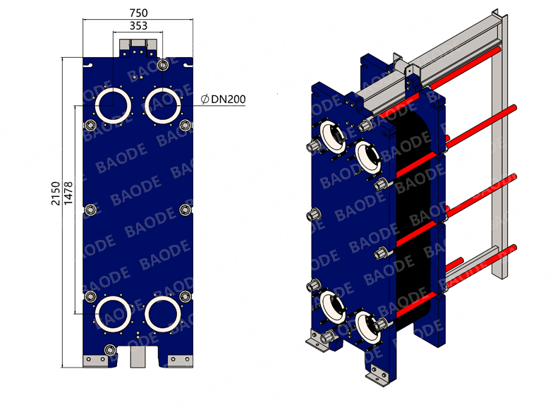 | 板片材质 | 不锈钢 / 钛 / 哈氏合金 /镍 | 框架材质 | 碳钢 | |